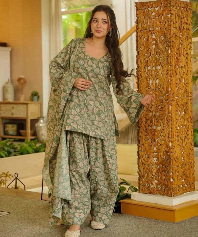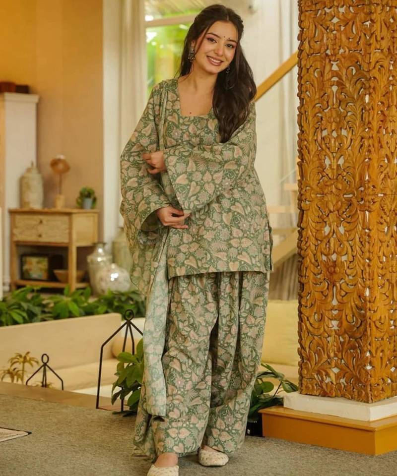 | Product Name | Light Olive Floral Printed Cotton Blend Co Ord Set | |
