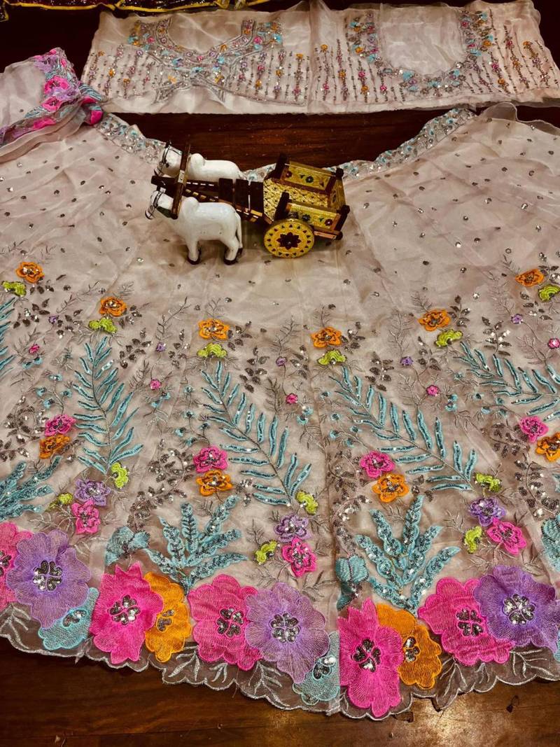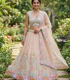 | Product Description | Soft, Airy, And Elegant, This Peach Sorbet Lehenga Features All Over Pastel Floral Embroidery On A Lightweight Net Base. The Unique Scalloped Bodice And Shimmering Sequin Spray Provide A Modern Sparkle. This Feminine Ensemble Is Ideal For Garden Parties And Pre Wedding Rituals, Ensuring You Look Effortlessly Chic And Sophisticated. |