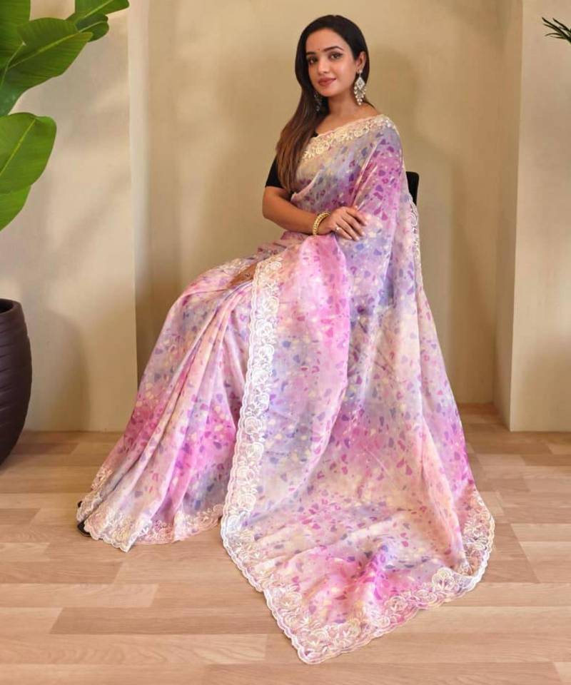 | Product Description | Capture The Essence Of Romance In This Light Purple Saree. Made From Delicate Embroidered, The Fabric Transitions Beautifully Through Shades Of Rose, Adorned With Subtle Floral Motifs. The Shimmering Sequined Scalloped Border Adds A Touch Of Sparkle, Creating A Soft, Feminine Look Perfect For Daytime Weddings Or Garden Parties. |