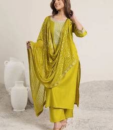 Brighten Your Style With This Lime Kurta Set Featuring Subtle Embroidery And A Matching Patterned Dupatta. Crafted From Lightweight, Breathable Fabric, It Ensures All Day Comfort. Paired With Coordinating Bottoms, This Outfit Is Perfect For Casual Outings, Festive Gatherings, And Daytime Celebrations With A Fresh, Vibrant Look.