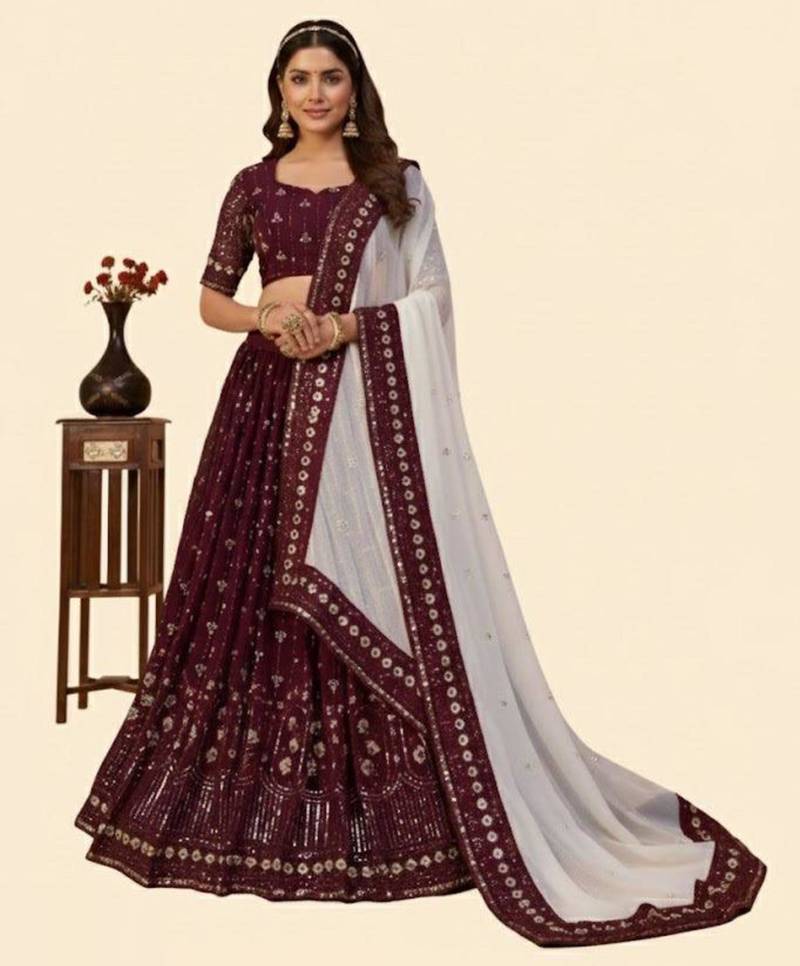| Product Name | Maroon Georgette Embroidered Lehengas | |