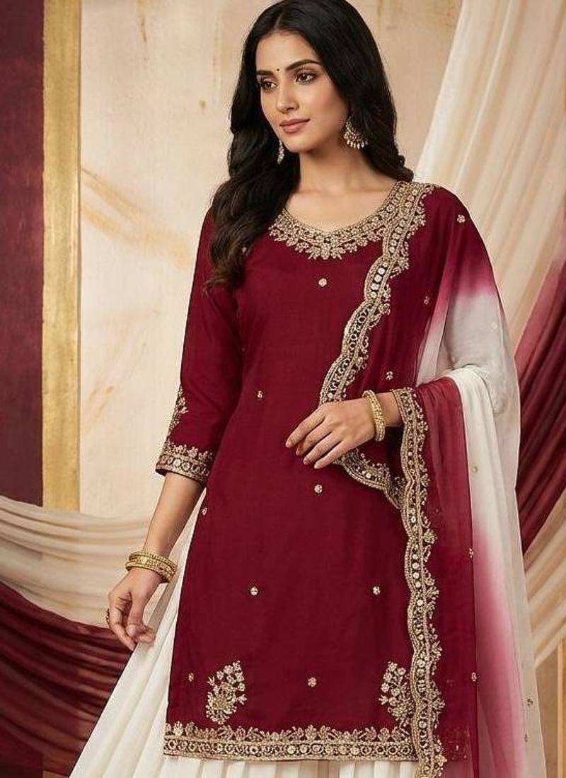 | Product Name | Maroon Kurta With White Sharara Set | |
