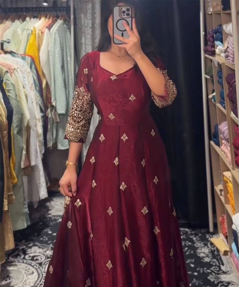 Maroon silk blend anarkali set stitched