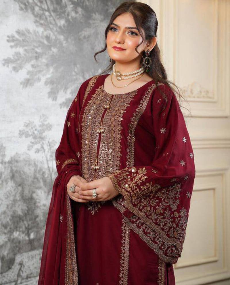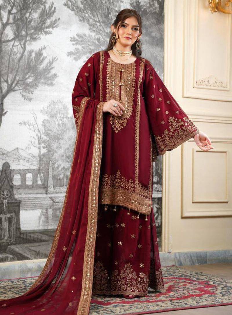 Product Name Maroon Silkblend Embroidered Sharara Set