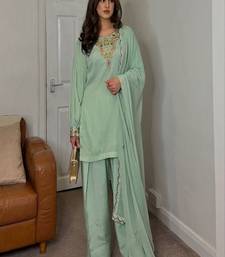 Mint green embroidered kurta set with dupatta stitched