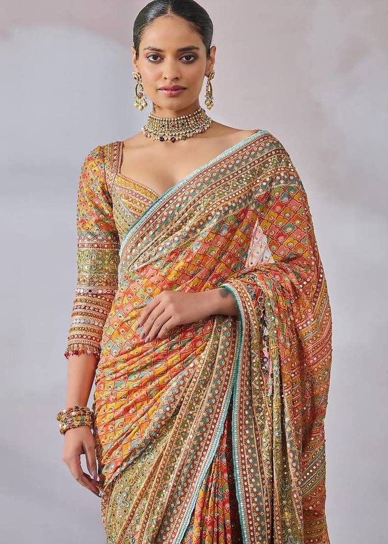 | Product Description | Bright Multicolor Saree Featuring Intricate Geometric Patterns And A Stylish Designer Blouse Piece. Crafted In A Lightweight Fabric, It Offers Comfort And Bold Visual Appeal. Perfect For Festive Gatherings, Casual Celebrations, And Cultural Events, This Saree Blends Vibrant Colors With Contemporary Design For A Standout Ethnic Look. |