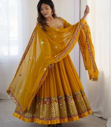 Mustard georgette anarkali suit set with embroidery stitched