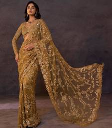 Mustard net embroidered saree