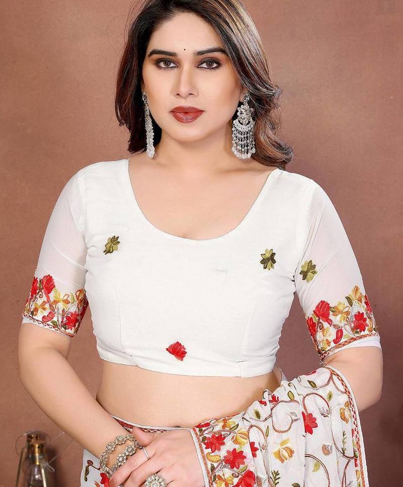 5. White Georgette Embroidered Saree
