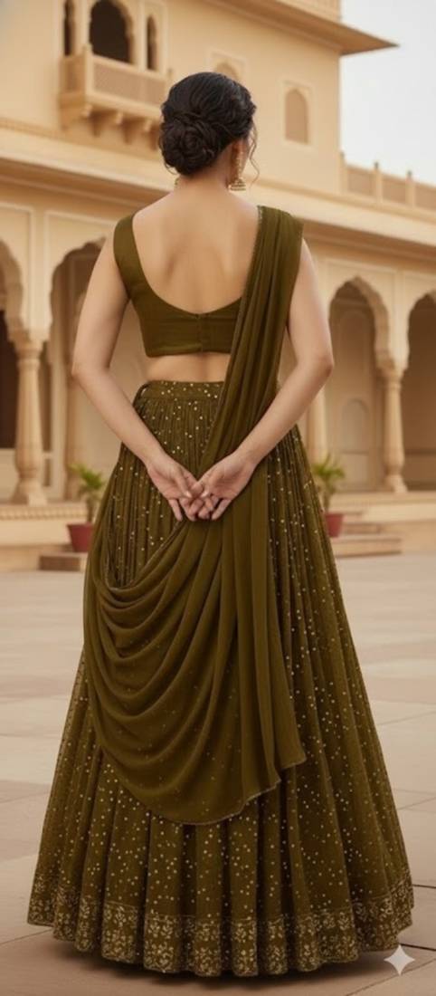 | Product Name | Olive Green Sequin Lehenga With Choli And Dupatta | |