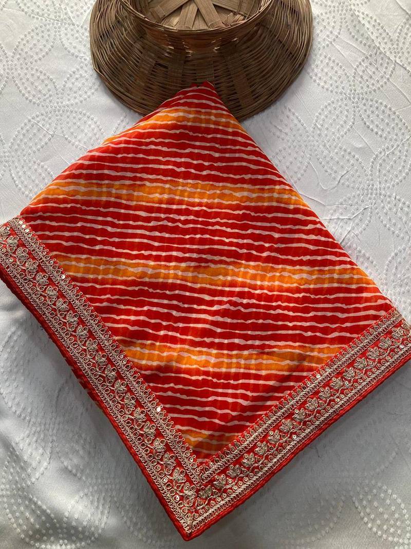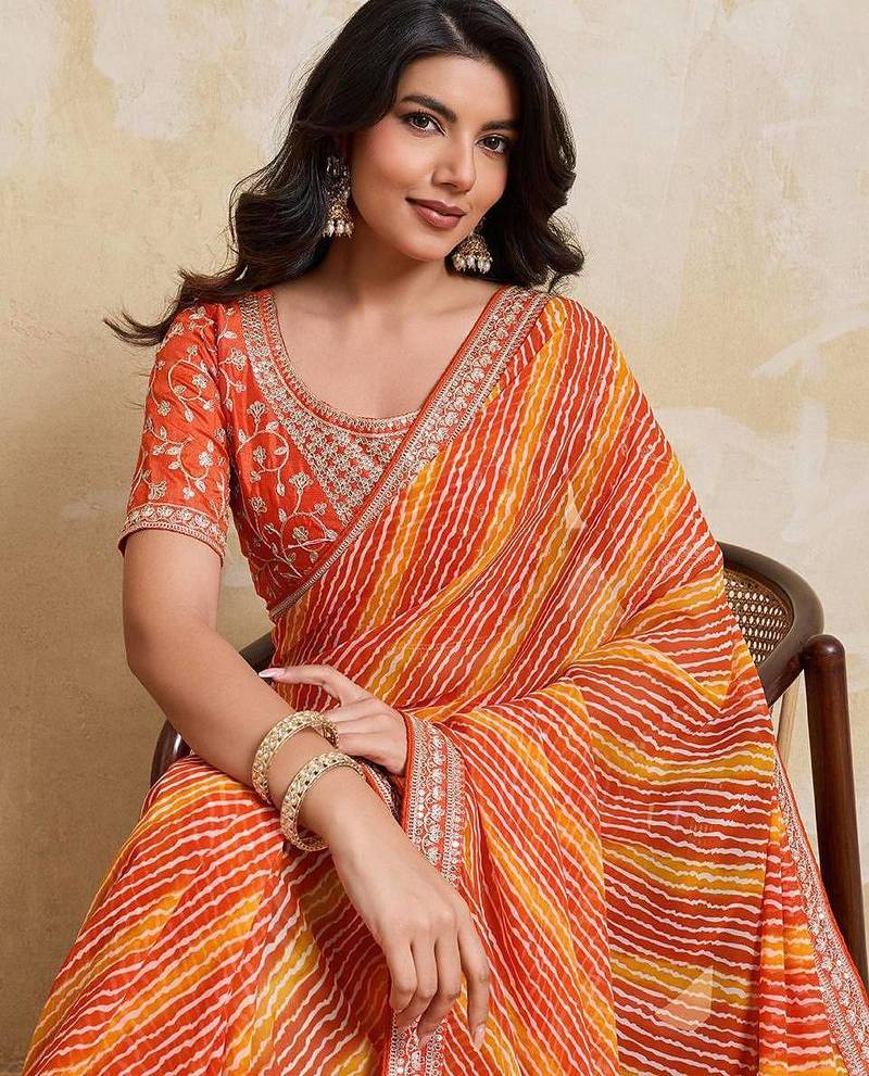 | Product Name | Orange Leheriya Printed Embroidered Saree | |