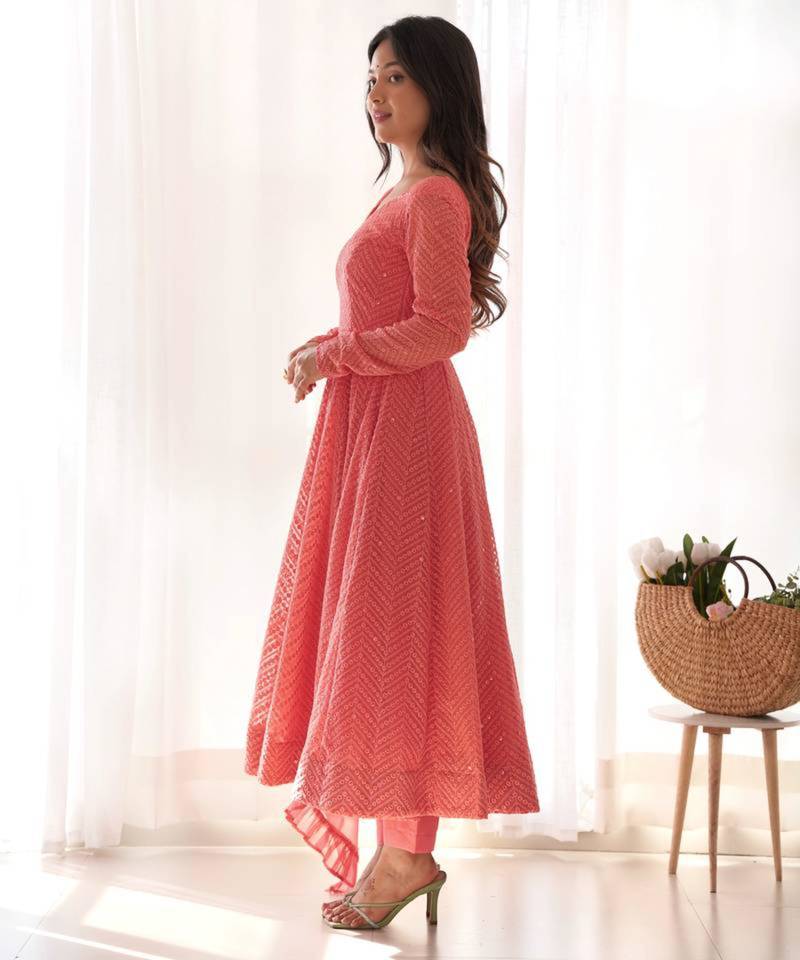 | Product Name | Peach Georgette Embroidered Gown Set | |