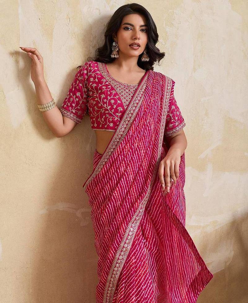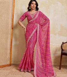 Georgette pink leheriya printed saree