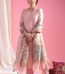 Radiate Grace In This Blush Pink Silk Suit. The Kurta Features Subtle Vertical Sequin Stripes That Catch The Light Beautifully, Paired With A Stunning Floral Bordered Dupatta. This Soft, Feminine Ensemble Is Perfect For Bridesmaids Or Festive Lunches, Offering A Sophisticated Look With A Touch Of Shimmering Glamour.