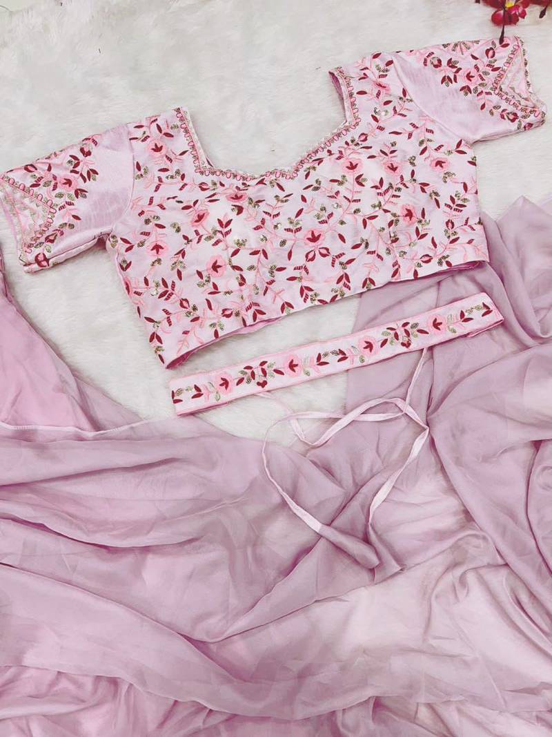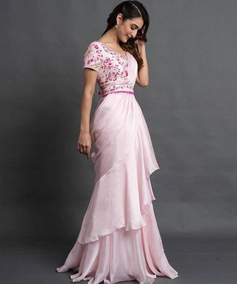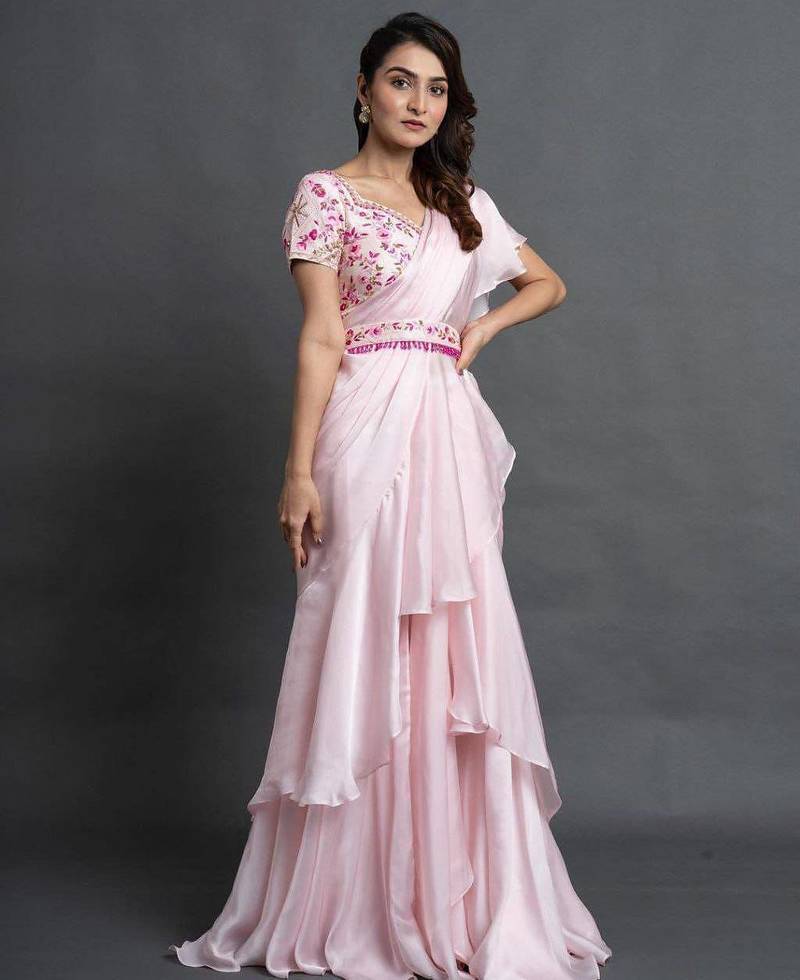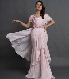 | Product Description | Embrace Romantic Elegance With This Ethereal Pastel Pink Layered Ruffle Saree. Constructed From Incredibly Soft, Fluid Georgette, The Cascading Draped Tiers Provide An Effortlessly Sophisticated Silhouette. Accompanied By A Beautifully Tailored Blouse Featuring Delicate Contrasting Floral Embroidery And An Embellished Waist Belt, This Contemporary Masterpiece Perfectly Bridges Tradition And Modernity. |