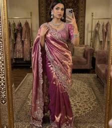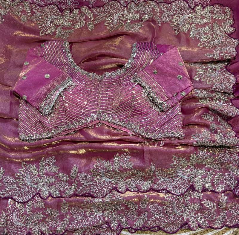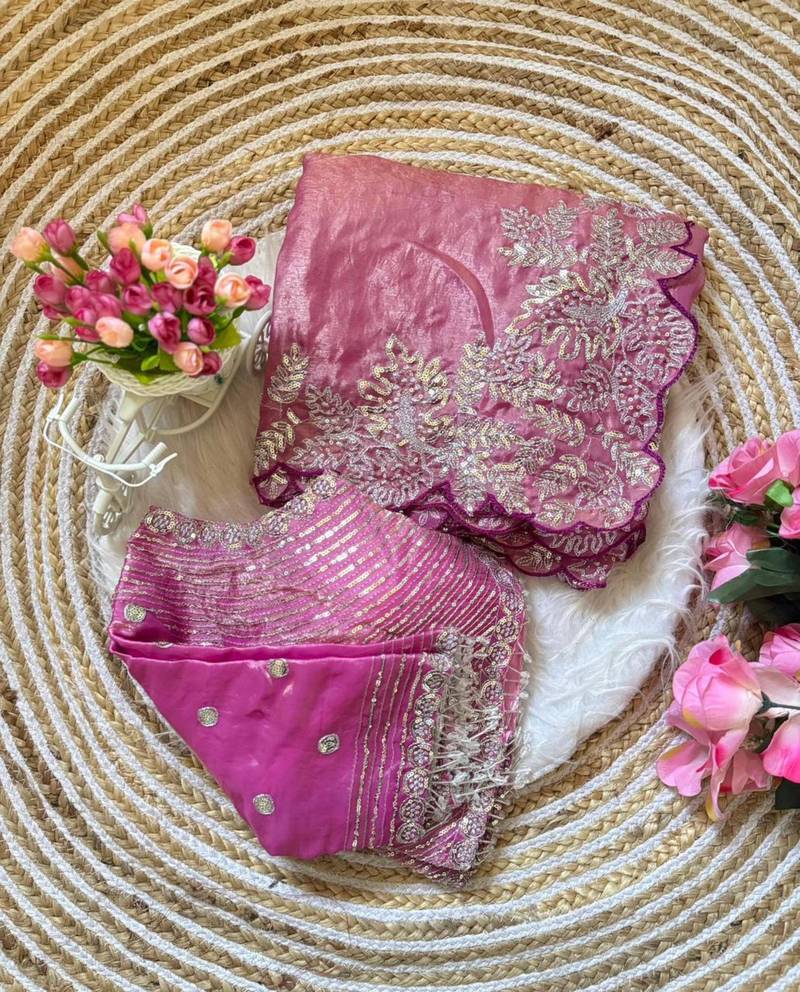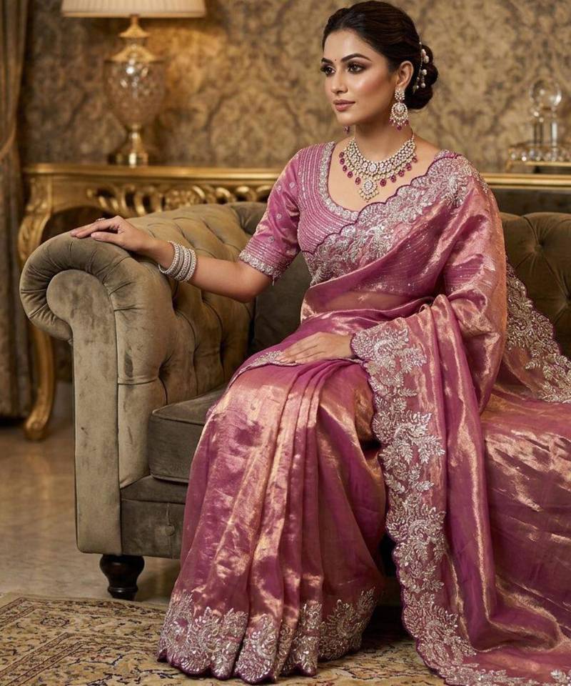 | Product Description | Discover Glamorous Sophistication With This Exquisite Dusty Rose Shimmer Silk Saree. Showcasing A Meticulously Crafted Scalloped Border Adorned With Heavy Silver Sequin Embroidery, This Dazzling Piece Reflects Impeccable Artistry. Accompanied By A Heavily Embellished Matching Blouse Featuring Elegant Tassels, This Ensemble Is An Immaculate Choice For High Profile Festive Celebrations. |