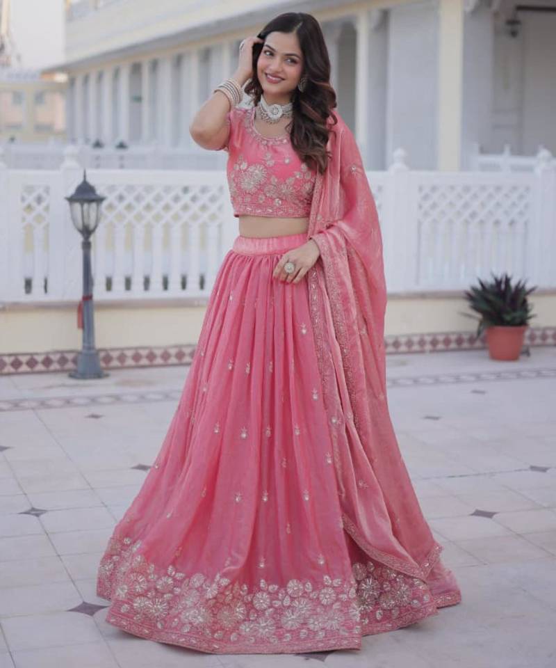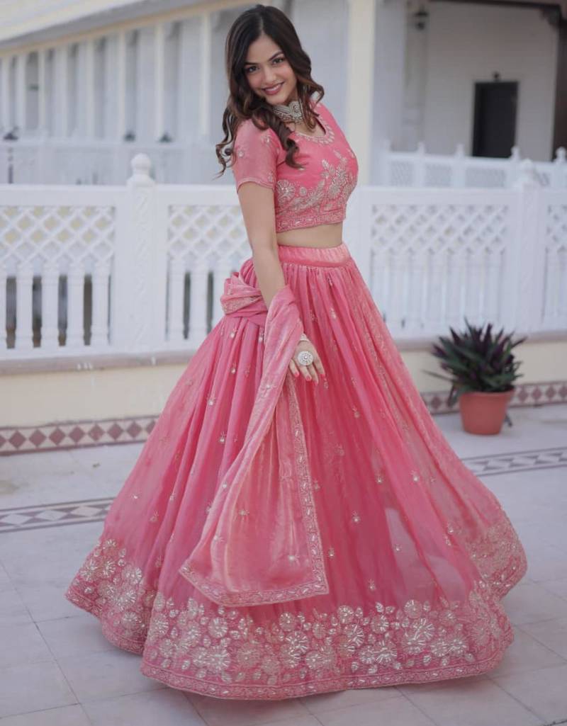 | Product Description | Radiate Grace In This Stunning Rose Pink Lehenga Set. Crafted From Premium Silk, The Blouse Features Exquisite Floral Threadwork And Sequin Detailing. Paired With A Matching Flowy Skirt And A Delicate Dupatta, This Ensemble Is Perfect For Weddings And Festive Celebrations Where You Want To Make A Sophisticated Statement. |