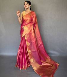 Pink tissue silk zari weaving border pallu saree with blouse