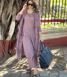 Purple cotton slub kurta set with printed dupatta stitched