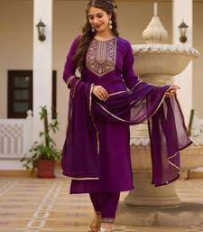 | Product Description | Step Into Elegance With This Rich Purple Kurta Set Adorned With Detailed Embroidery On The Yoke And Sleeves. Crafted From Comfortable Fabric, It Includes Matching Pants And A Graceful Dupatta. Ideal For Festive Occasions, Celebrations, Or Evening Events, This Outfit Blends Traditional Charm With Contemporary Sophistication Effortlessly. |