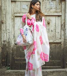 Elevate Your Ethnic Wardrobe With This Captivating Deep Purple Saree, Featuring A Stunning Hand Painted Floral Masterpiece On The Pallu. The Intricate Artistry Showcases Vibrant Blossoms And A Graceful Silhouette, Blending Traditional Drape With Contemporary Fine Art. Lightweight And Breathable, It Is An Ideal Choice For Art Events And Evening Soirées.