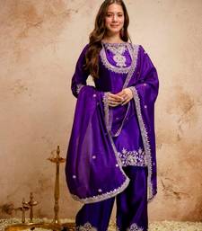 | • | Dupatta | : | Color- Purple / Fabric- Silk Blend |