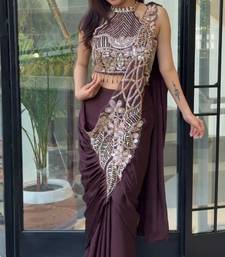 | Product Description | Make A Bold Statement In This Maroon Evening Saree. The Halter Neck Bodice Is Heavily Encrusted With Silver Crystals And Beads, Flowing Into A Dramatic Architectural Drape. This Silk Blend Piece Features Bold Floral Appliqué Along The Border, Making It A Masterpiece Of Contemporary Ethnic Wear For Elite Celebrations. |