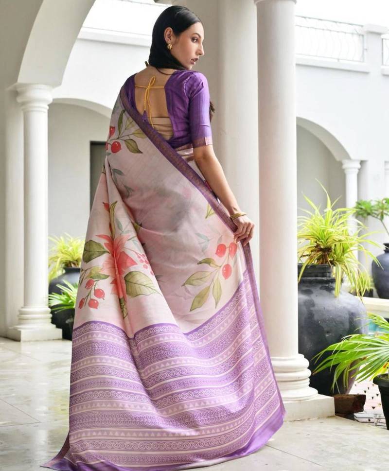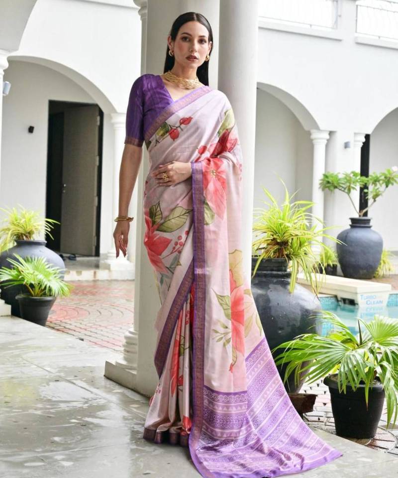 | Product Name | Purple Silk Blend Floral Printed Saree | |