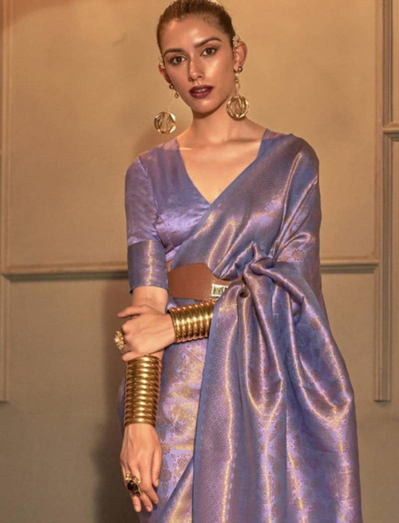 | Product Description | This Purple Kanvi Woven Silk Saree Is A Must Have In Your Fashion Wardrobe. It Has A Soft Texture That Makes It Easy To Drape And Comfortable To Wear For Long Hours. The Saree Comes With A Broad Border And Tassels At The Pallu. It Also Comes With An 85cm Blouse Piece In A Matching Design. The Deep Purple Hue Adds A Regal Touch, Making It Perfect For Special Occasions Like Weddings, Festivals, Or Family Gatherings. Adorn This Banarasi Silk Saree With Matching Gold Jewelry And Heels. |