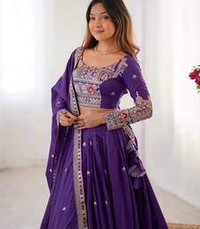Purple silk coding dori sequin embroidery work lehenga choli with dupatta