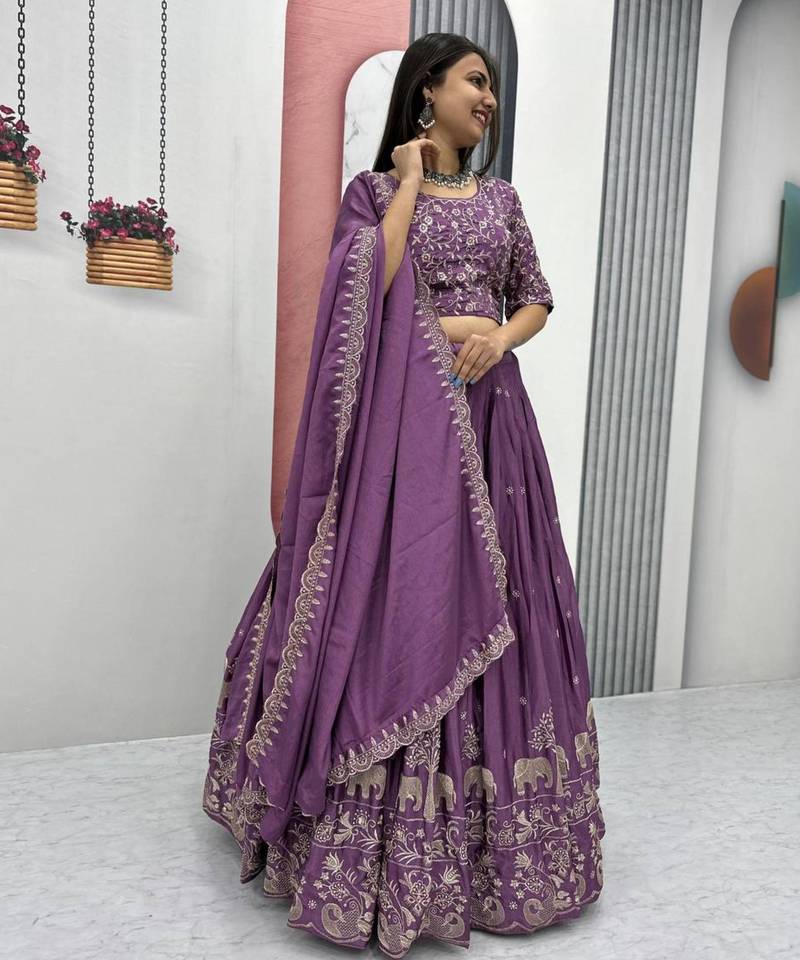 | Product Description | Add Charm To Your Wardrobe With This Purple Lehenga Set Featuring Delicate Embroidery And A Matching Dupatta. Crafted For Comfort And Style, It Offers A Flattering Silhouette And Lightweight Feel. Perfect For Festive Wear Or Special Occasions, This Outfit Blends Soft Color With Elegant Detailing. |