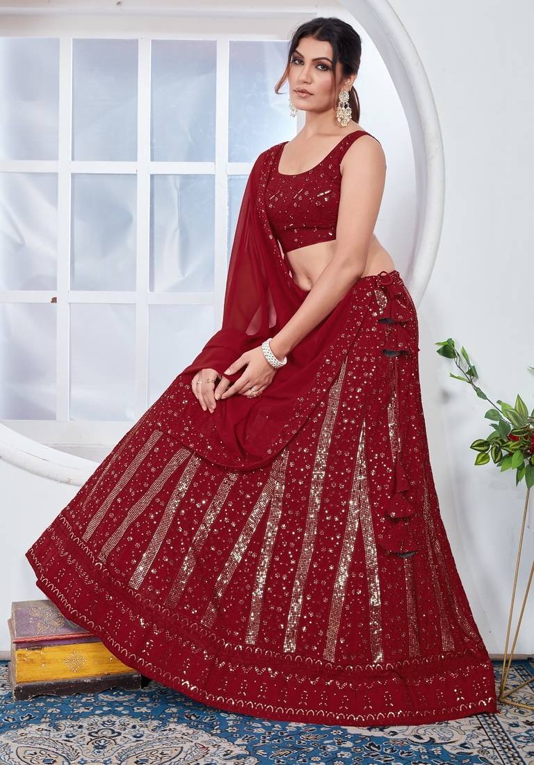 Red festive lehenga choli set