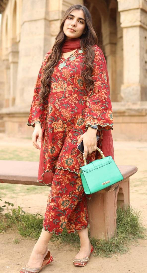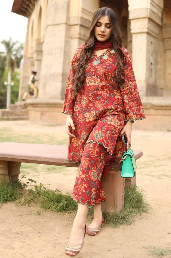 | Product Description | Make A Vibrant Statement In This Red Floral Co Ord Set. The Tunic And Trousers Feature Exquisite Scalloped Edges And Contrasting Green Embroidery That Highlights The Rich Botanical Print. Perfect For Outdoor Events, This Ensemble Offers A Relaxed Fit And High Quality Fabric That Ensures You Remain Comfortable And Stylish All Day. |