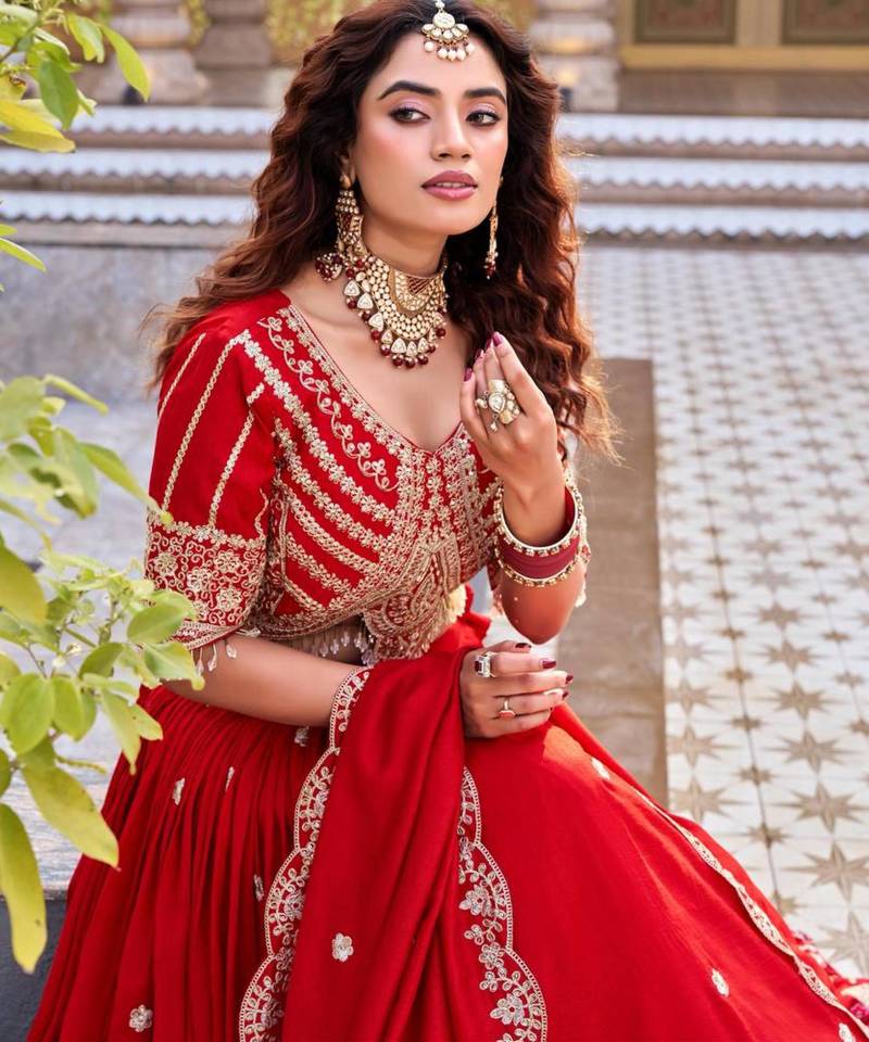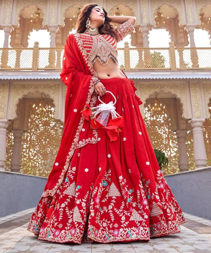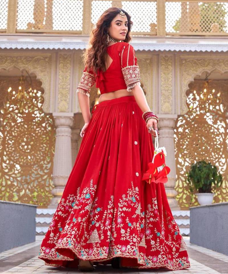 Red silkblend embroidered lehenga set