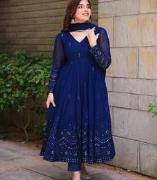 | Product Description | Elevate Your Ethnic Wardrobe With This Stunning Royal Blue Anarkali Set. Featuring Intricate Mirror Work And Delicate Embroidery On The Sleeves And Hem, This Ensemble Offers A Sophisticated Silhouette. Perfect For Evening Soirées, The Lightweight Georgette Fabric Ensures Graceful Movement While The Matching Dupatta Adds A Touch Of Timeless Elegance. |