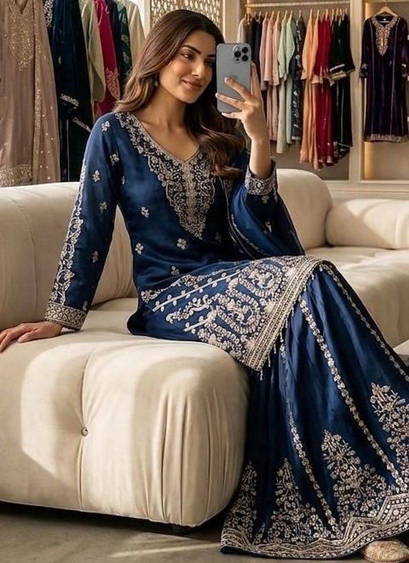 | Product Name | Royal Blue Embroidered Sharara Suit | |