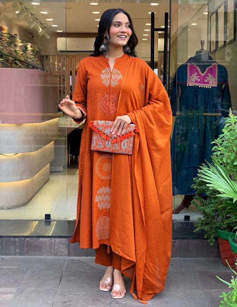 | Product Description | Stand Out In Style With This Modern Rust Kurta Set Featuring Unique Geometric Prints And A Relaxed Silhouette. Designed For Comfort And Trend Appeal, It Includes Matching Bottoms And A Coordinated Dupatta. Perfect For Casual Wear, Festive Gatherings, And Contemporary Ethnic Styling With A Bold, Vibrant Look. |