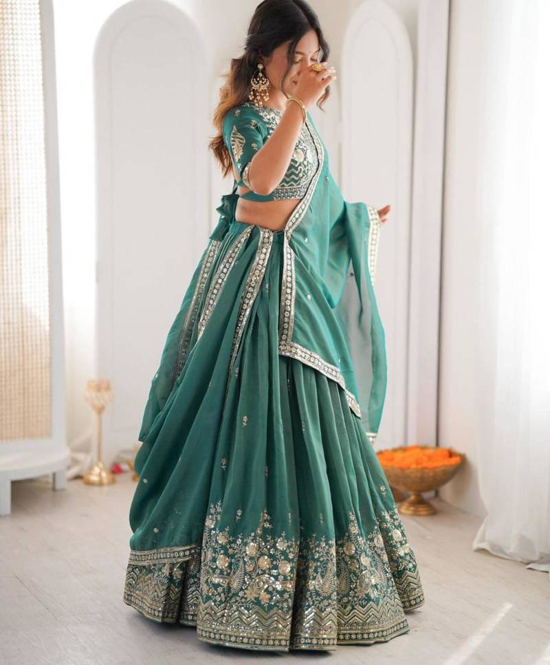 Sea green silkblend embroidered lehenga set