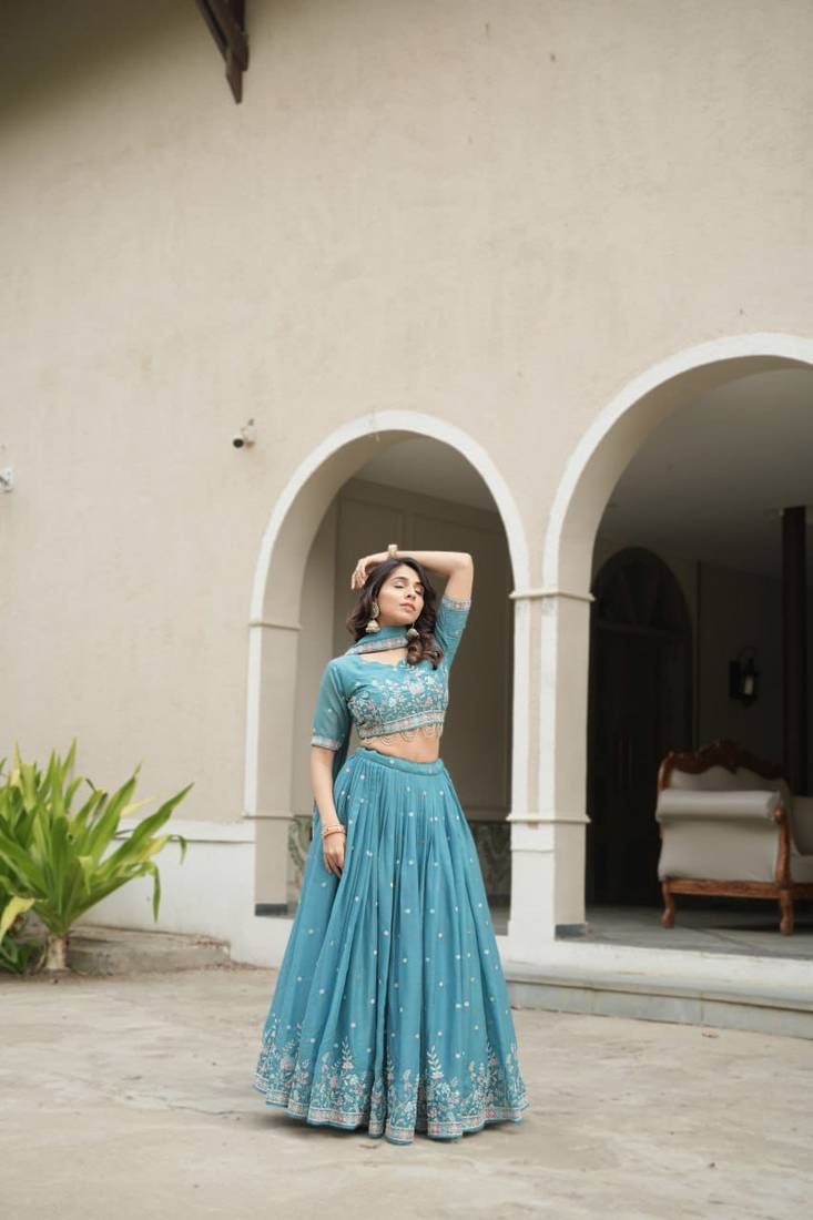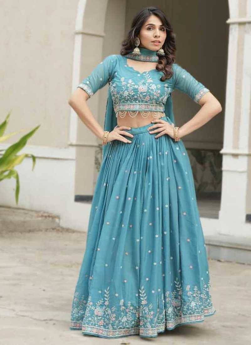 Sky blue embroidered lehenga choli set