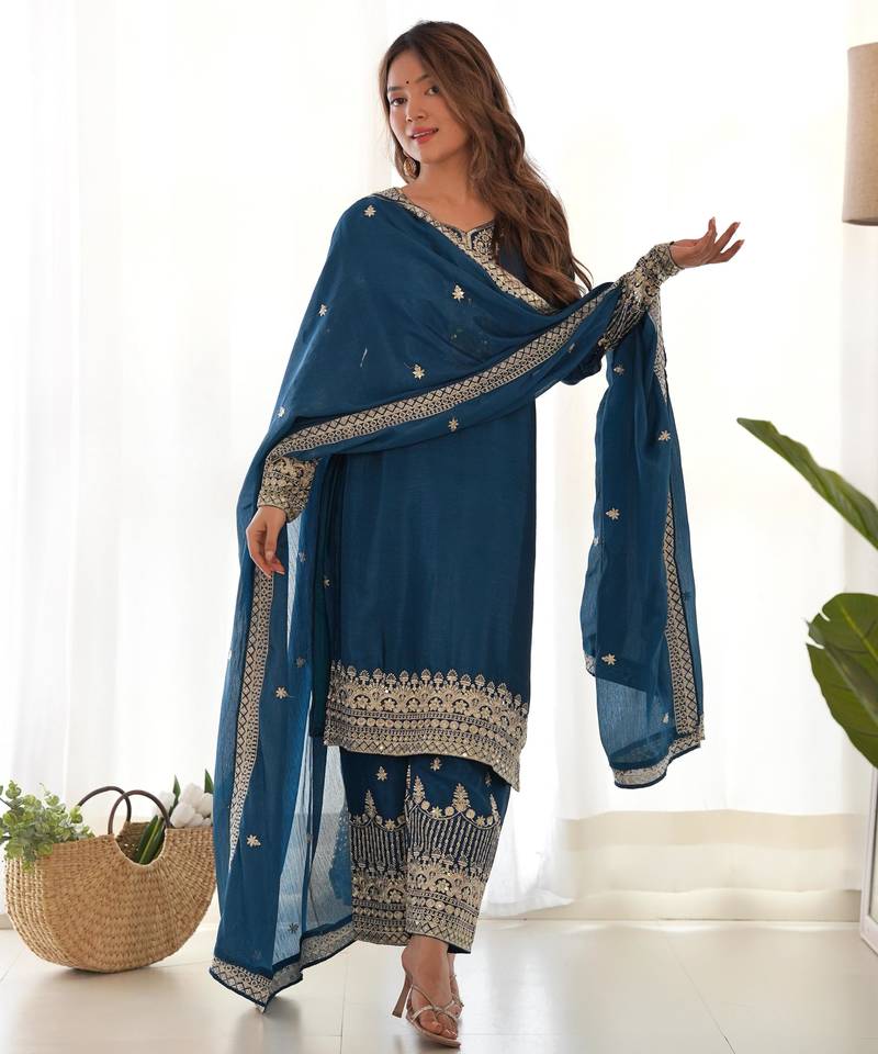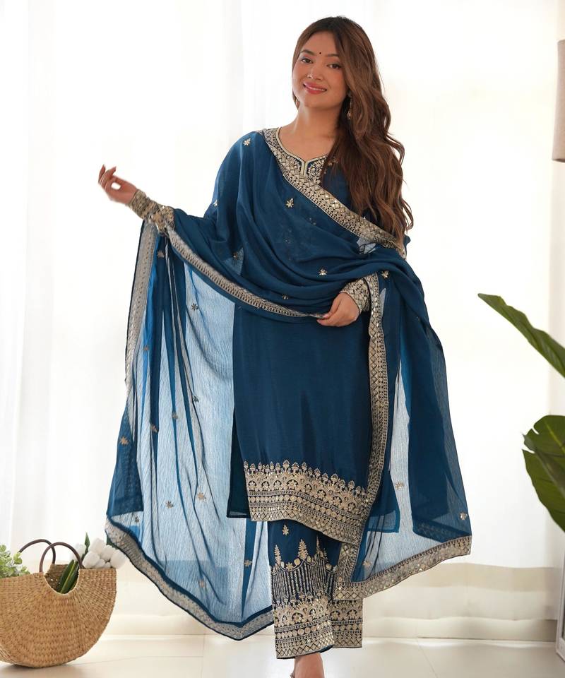 | Product Name | Teal Blue Silk Embroidered Suit With Heavily Bordered Pants | |