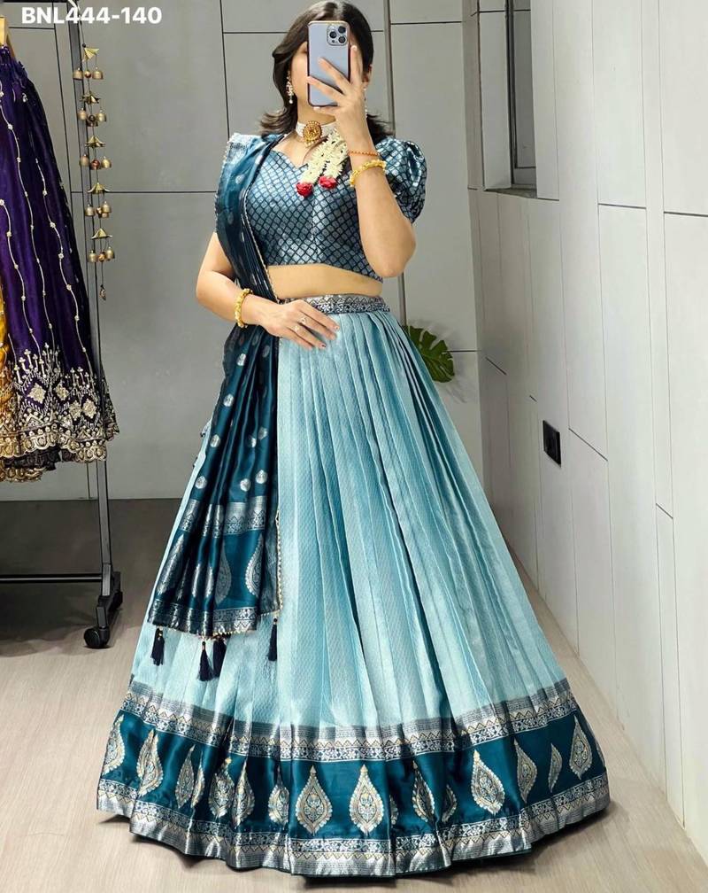 | Product Name | Teal Blue Silk Blend Brasso Lehengas | |