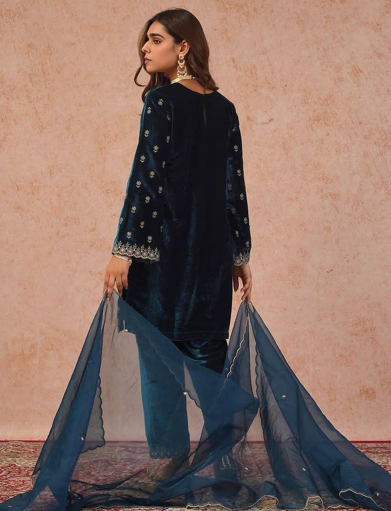 | Product Name | Teal Blue Velvet Kurta Set With Intricate Embroidery Work | |
