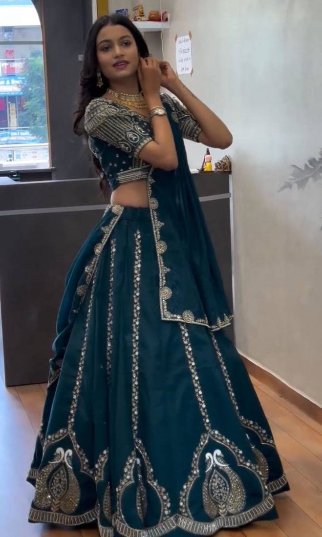 | Product Description | Turn Heads With This Teal Lehenga Featuring Heavy Embroidery And A Structured Silhouette. Crafted From High Quality Fabric, It Ensures Durability And Comfort. Perfect For Weddings, Receptions, And Evening Events, This Outfit Combines Rich Color With Luxurious Detailing For A Standout Ethnic Look. |