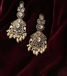 | Product Description | Embrace Old World Charm With These Victorian Finish Statement Earrings. The Intricate Scrollwork Design Is Encrusted With Sparkling Ad Stones And Accented By Lustrous Cream Pearl Bunches. These Heritage Inspired Earrings Are A Flawless Match For Velvet Lehengas Or Contemporary Fusion Wear, Making You The Center Of Attention At Any Event. |