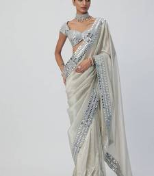 White color mirror work soft satin organza silk saree