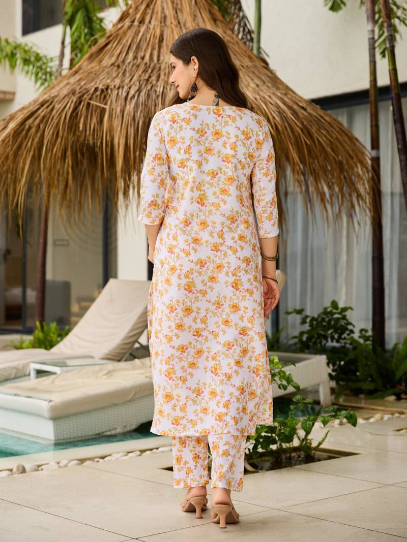 | Product Description | Embrace Daytime Grace In This Fresh, Breathable Silk Blend Ensemble. Featuring A Vibrant Yellow Floral Print On A Crisp White Base, The Kurta Offers A Relaxed Yet Tailored Silhouette. The Coordinated Organza Dupatta With Gold Trimmed Borders Adds A Touch Of Refinement, Making It Ideal For Summer Garden Parties Or Brunches. |