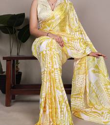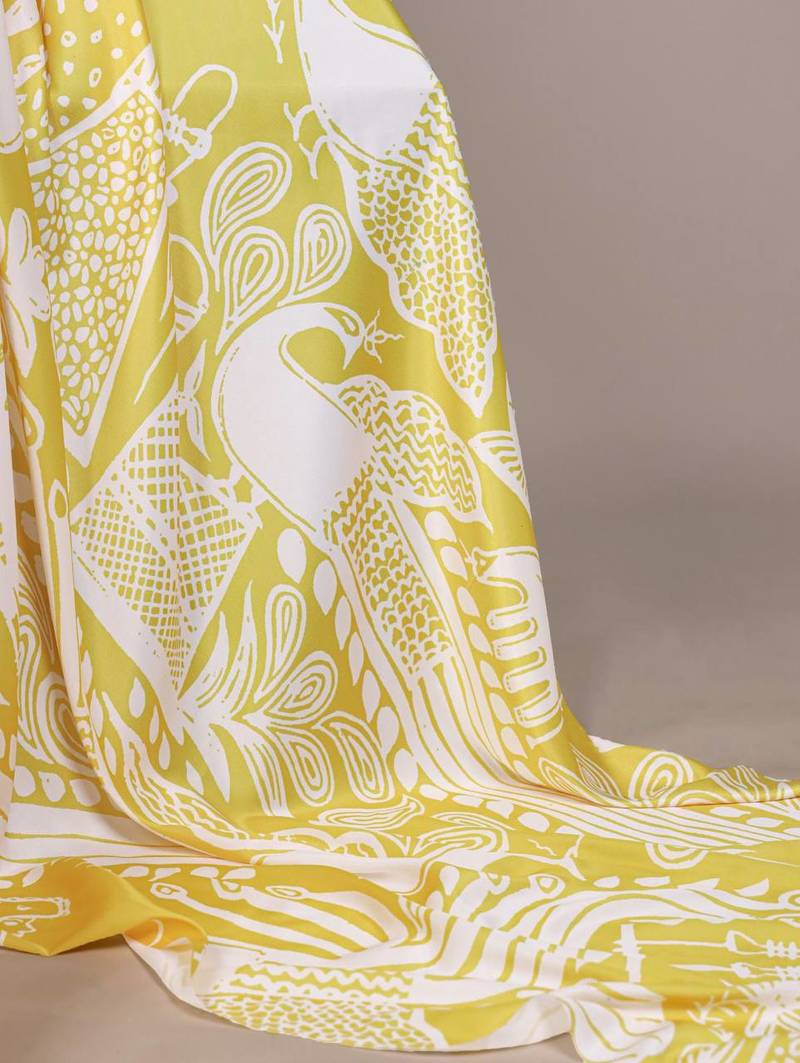 Yellow abstract print satin saree