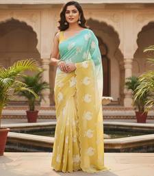 | Product Description | Graceful Ombre Saree Blending Soft Yellow And Mint Green Tones With Delicate White Motifs. Crafted In A Flowy, Breathable Fabric, It Offers Comfort And Elegance. Ideal For Daytime Events, Brunches, And Celebrations, This Saree Adds A Fresh, Feminine Touch While Ensuring Effortless Draping And A Flattering Silhouette. |