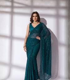 Teal sequin georgette saree with unstiched blouse