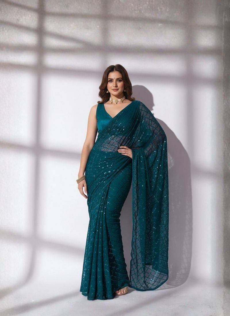 | Product Name | Teal Sequin Georgette Saree With Unstiched Blouse | |